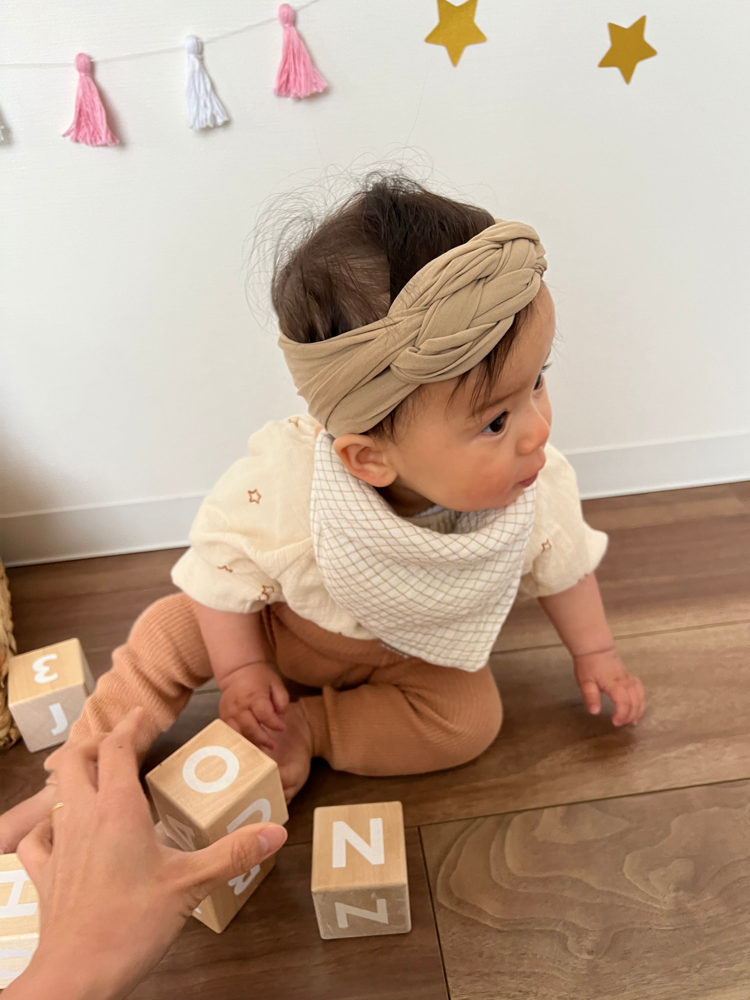 結び目がないので、ねんね期のbabyにもおすすめです。
